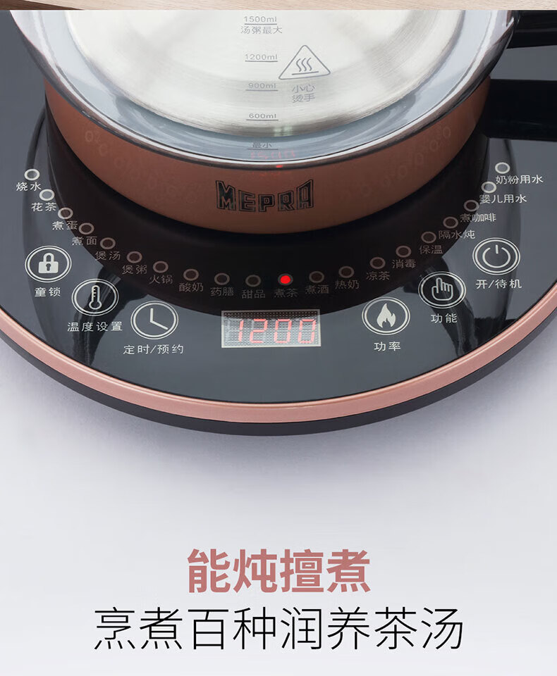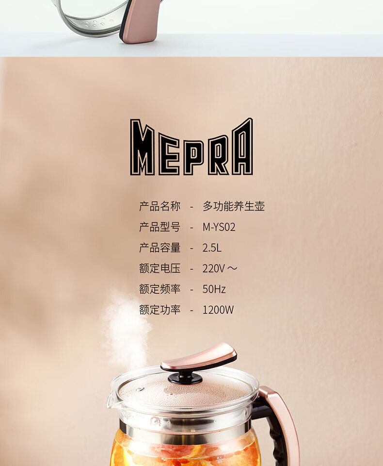 MEPRA养生壶电热水壶煮茶壶2.5L大容量烧水壶花茶壶多功能恒温壶 炖煮壶M-YS02普T