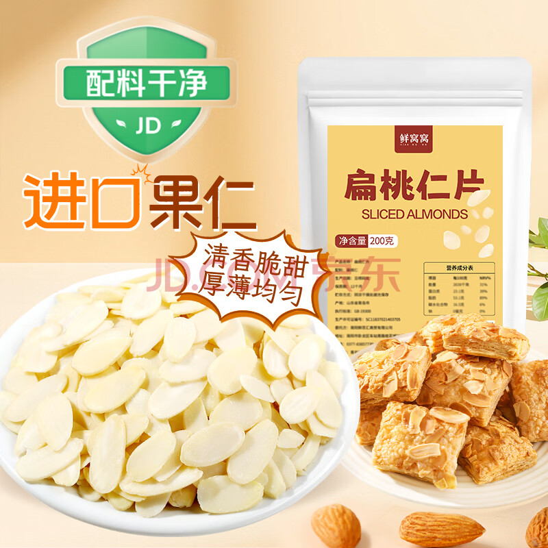 鲜窝窝 大杏仁片200g 扁桃仁片木仁片糯米船雪花酥用饼干甜品烘焙原料