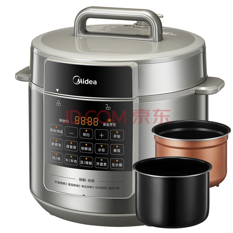 美的(Midea)饺子王电压力锅5L家用电锅全自动智能预约饭煲无水焗双胆开盖火锅高压锅MY-E5910(4-6人)京东