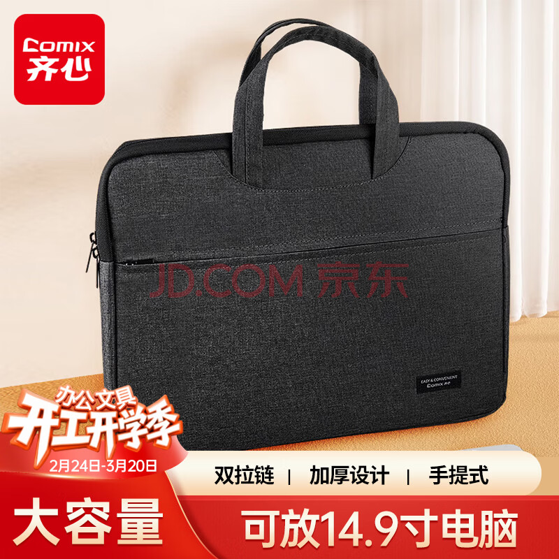 齐心(COMIX)加厚立体办公手提袋/会议包/事务包/文件包/商务双拉链袋大容量电脑公文包黑色便携EA5002