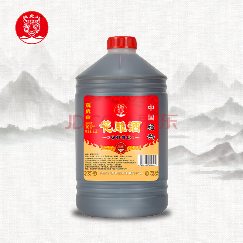 观虎山绍兴黄酒 陈酿花雕酒 干型料酒 2.5L单桶装 清爽型自饮厨用