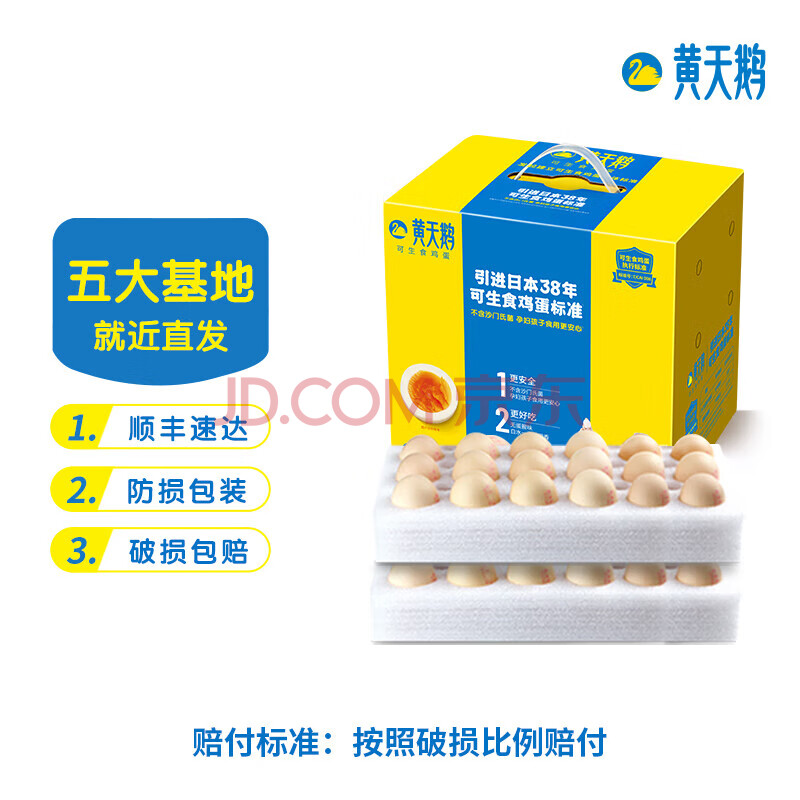 黄天鹅 可生食鲜鸡蛋36枚 新鲜鸡蛋 健康轻食不含沙门氏菌 礼盒装