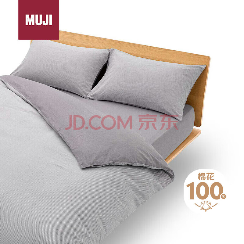 MUJI水洗棉 被套 纯棉被罩 灰色×灰色条纹 双人 2*2.3m