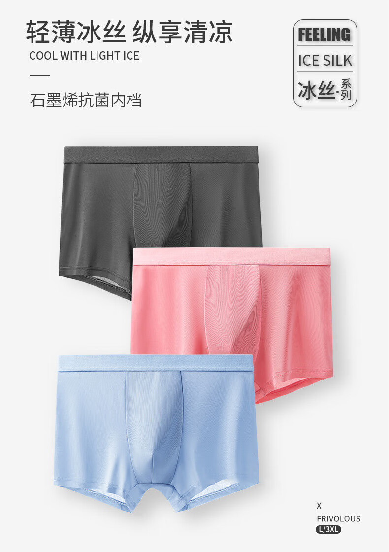 雪茜曼男士内裤男平角裤冰丝凉感无痕大码四角男式短裤衩情人节礼物