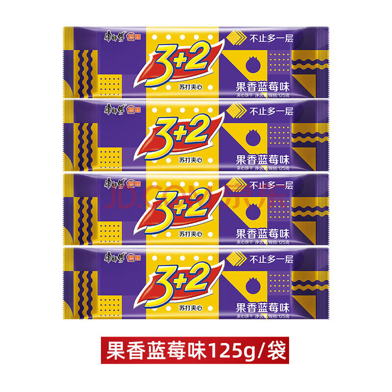 康师傅 3+2苏打夹心饼干 果香蓝莓味125g/包 六包起订