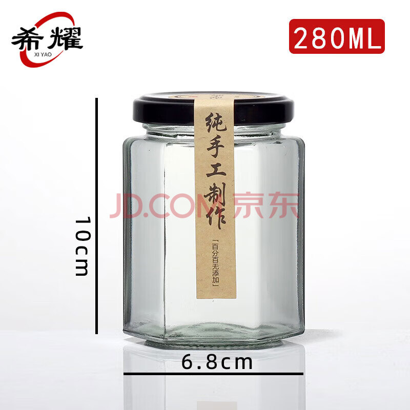 希耀 玻璃蜂蜜瓶六棱玻璃瓶密封罐带盖辣椒酱果酱罐子 280ml