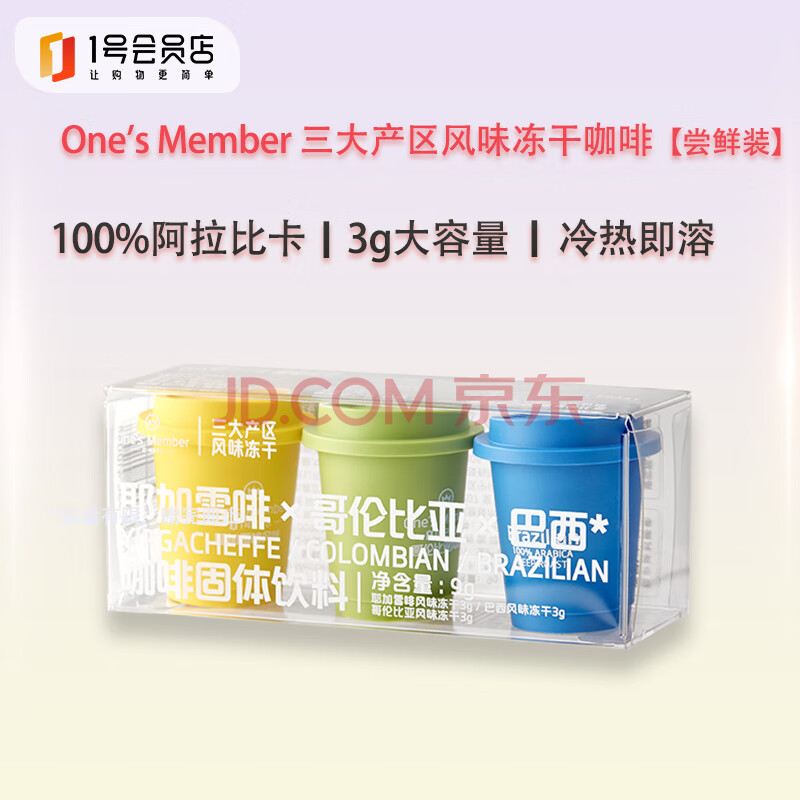 One's Member三种风味速溶咖啡冻干美式拿铁混合装3g*3颗健身运动减脂
