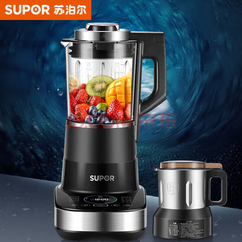 苏泊尔(SUPOR)可拆洗破壁机蒸汽清洗多功能加热破壁料理机豆浆果汁辅食机一机双杯1.75L容量SP65S黑色
