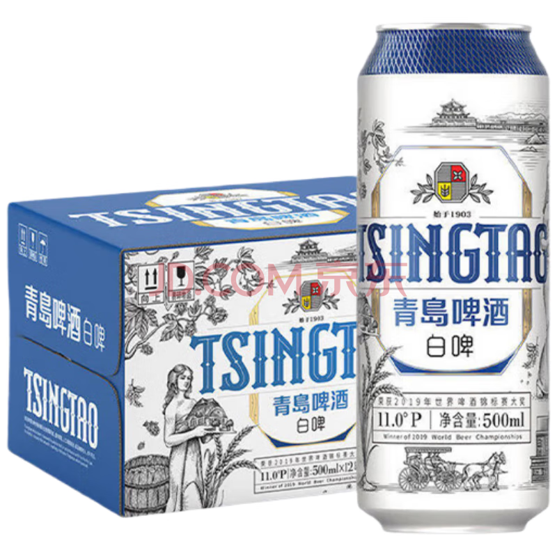 青岛啤酒(TsingTao)白啤500ml*12听青岛白啤浓郁麦香全麦酿造整箱精酿啤酒自营