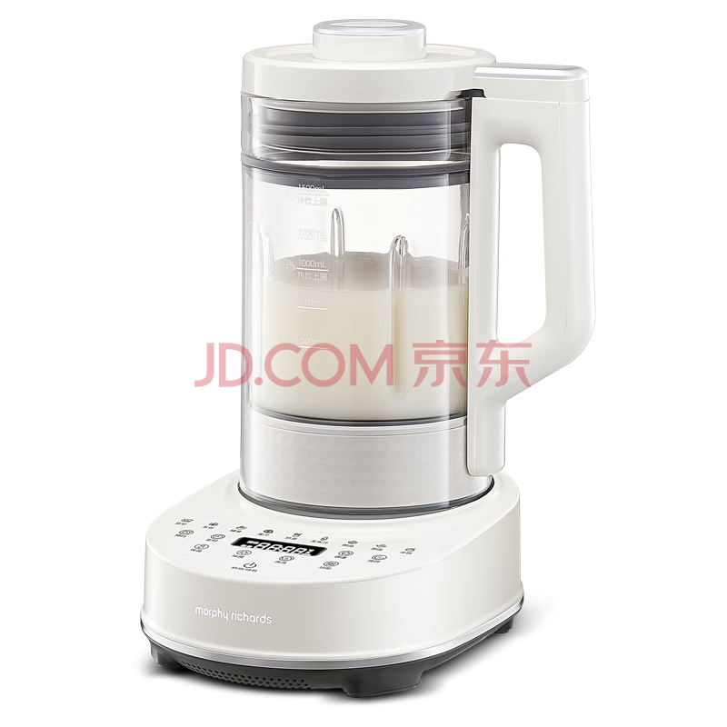 摩飞电器(Morphyrichards)柔音破壁机家用1.5L加热水豆分离免煮免泡豆浆机多功能预约定时榨汁机果汁机婴儿辅食机MR8202A白