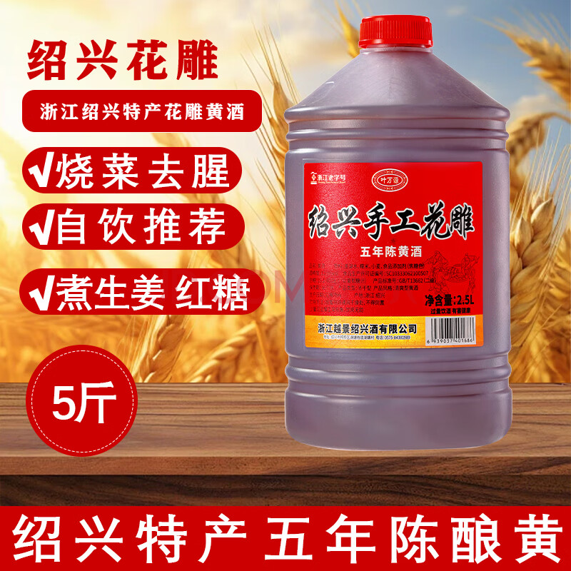 叶万源绍兴花雕黄酒五年陈 半干型2.5L桶装米酒家用厨用料酒