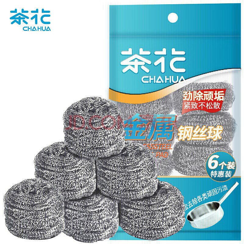 茶花 B4302P钢丝球 锅刷子铁丝球大号洗锅球刷锅球多功能清洁球 6个装/包 1包(单位:包)