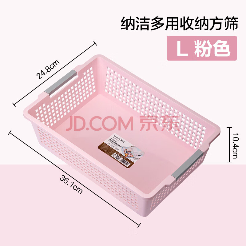 茶花 161003收纳筐塑料杂物收纳篮子桌面厨房零食整理盒办公室收纳篮 浅粉色方筛【L】1只(单位:只)