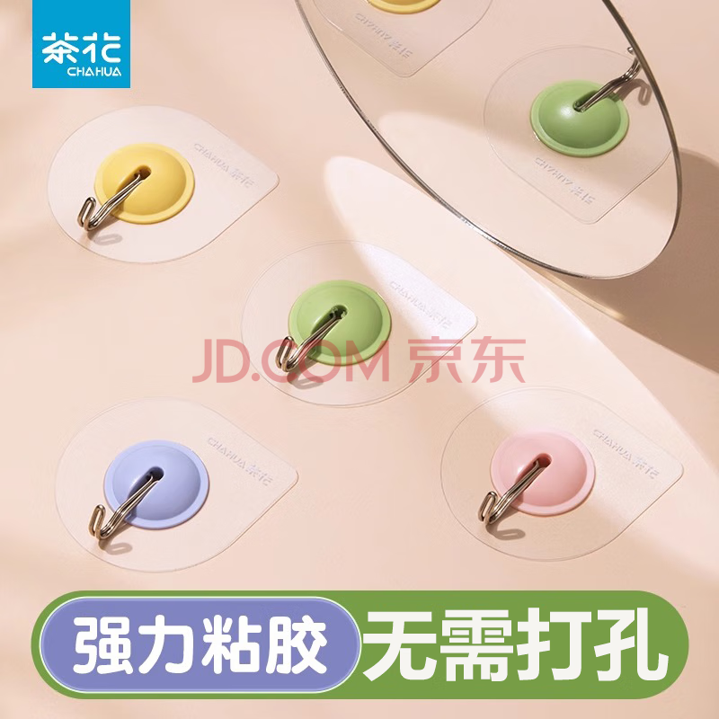 茶花 121025强力挂钩 无痕透明免打孔厨房卧室浴室门后墙上粘钩 混色4个/排 1排(单位:排)