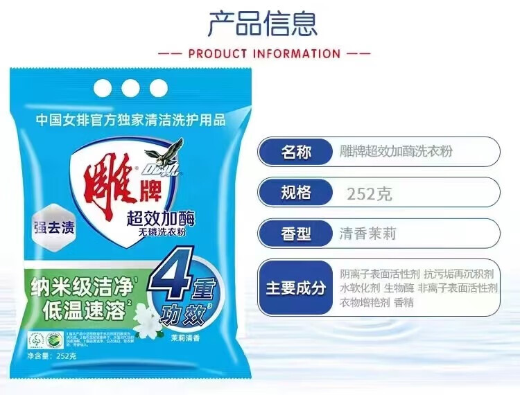雕牌洗衣粉 超效加酶 茉莉清香 强效去渍 去污 508g 1袋