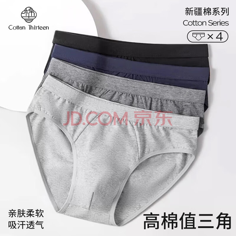 棉十三男士内裤【纯棉抗菌裆】三角裤头透气宽松男生青少年短裤衩4条装