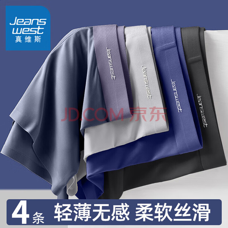 真维斯(Jeanswest)男士内裤冰丝透气夏季薄款大码宽松速干男生平角裤短裤衩裤头4条