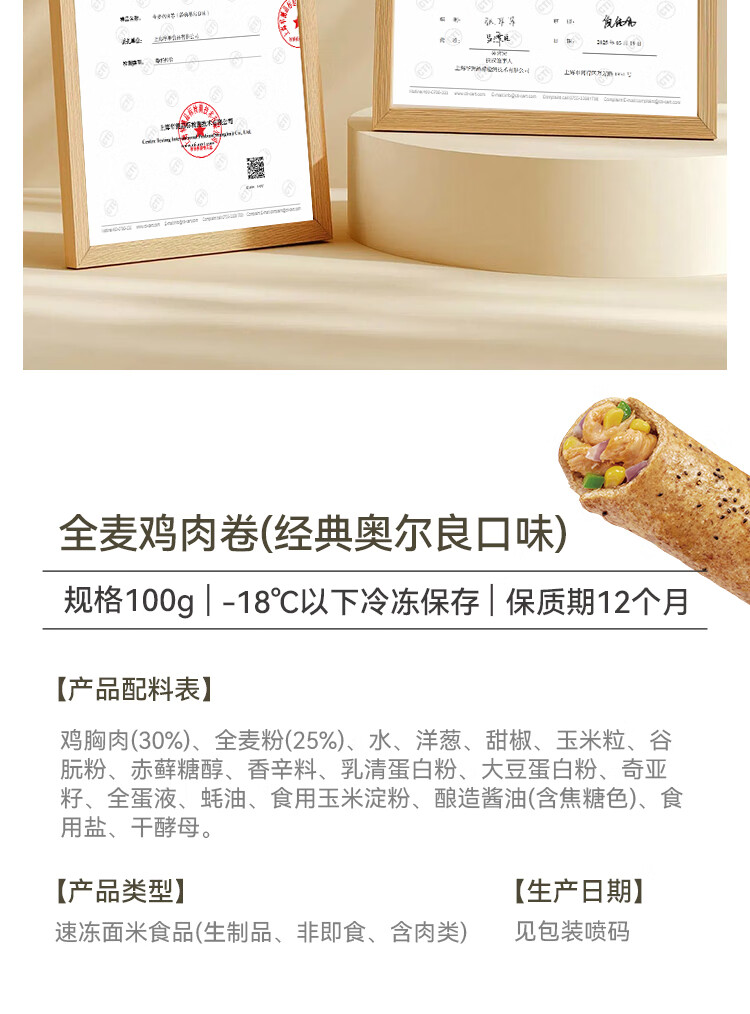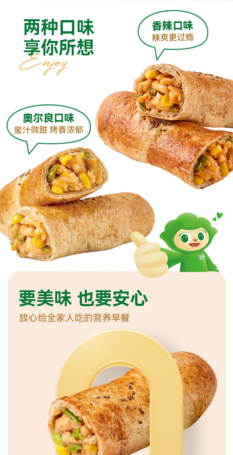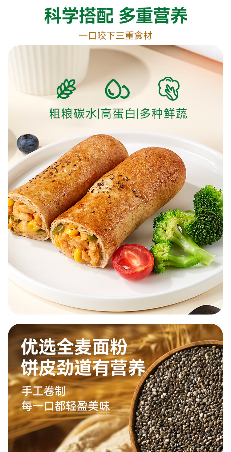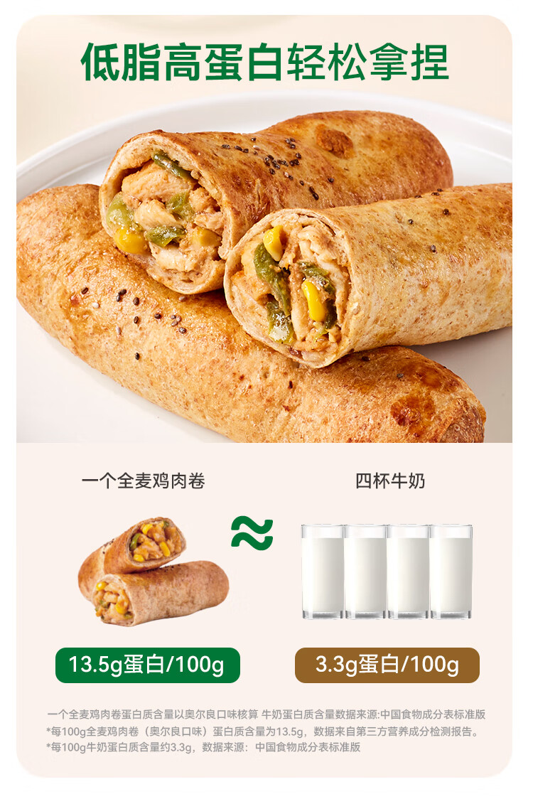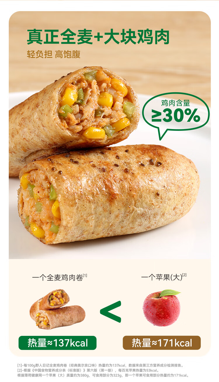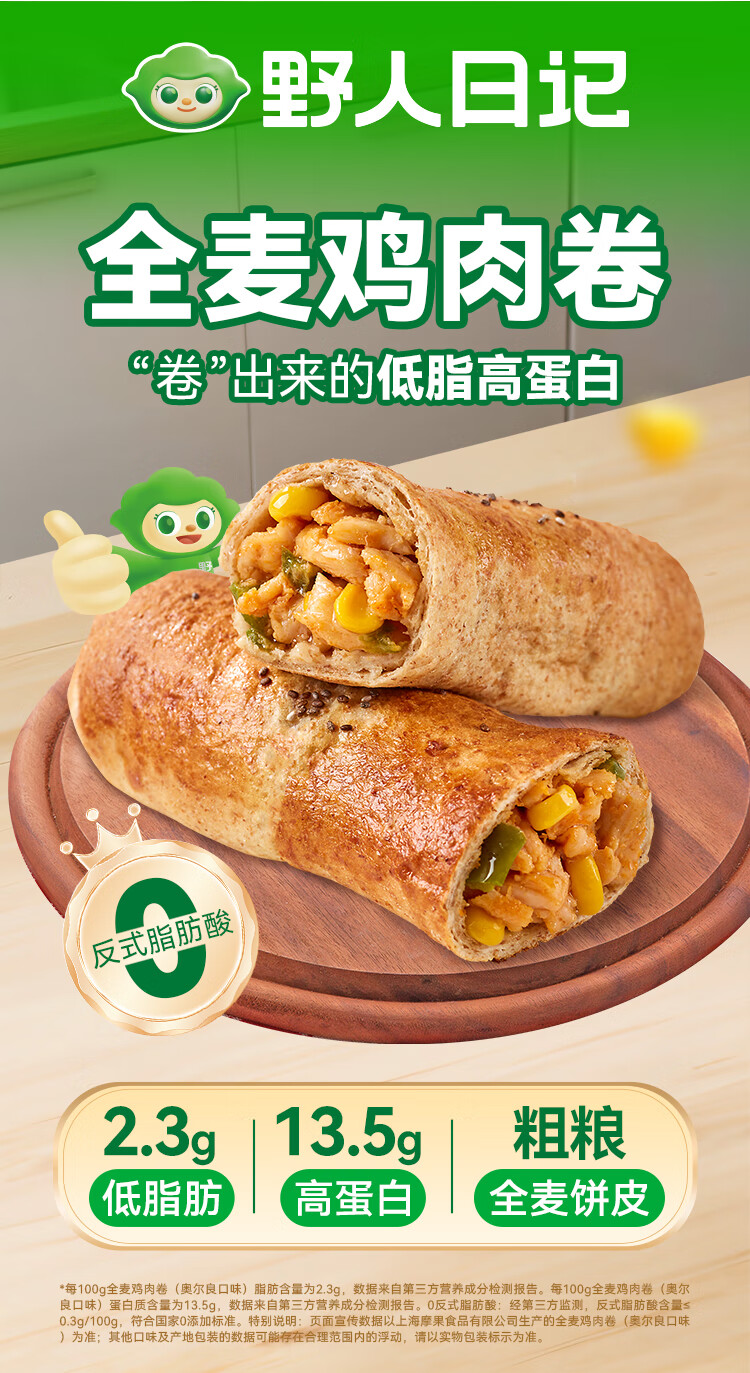 野人日记全麦鸡肉卷经典奥尔良口味100g 1根 代餐低脂高蛋白营养早餐美味