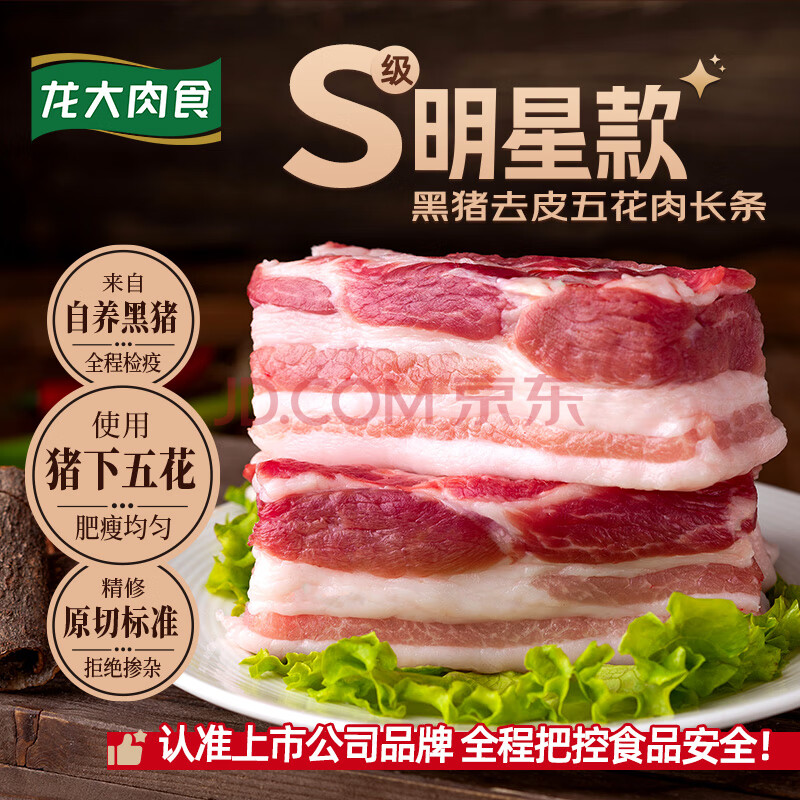 龙大肉食黑猪去皮五花肉条 净重2.4斤 去皮五花猪五花烧烤食材猪肉