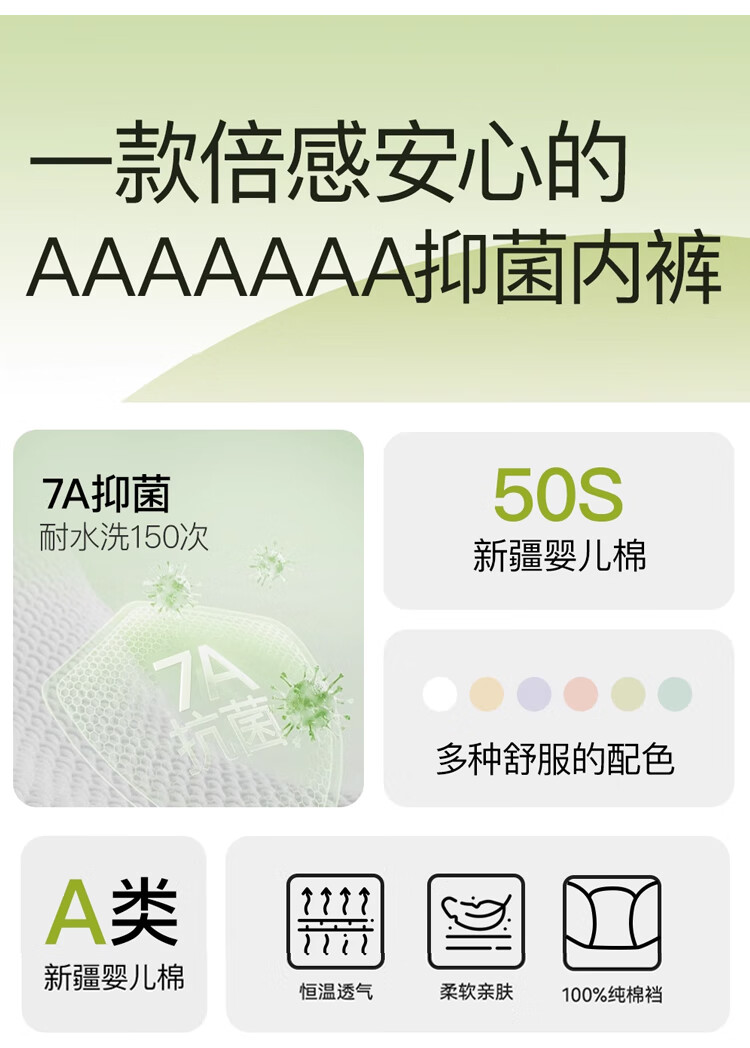 雪茜曼女士内裤女纯棉7A抑菌少女三角内裤无痕中腰内裤