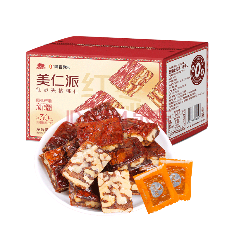 西域美农枣仁派600g*箱 核桃>30%大枣夹核桃软糯香甜独立小包装1号店专供