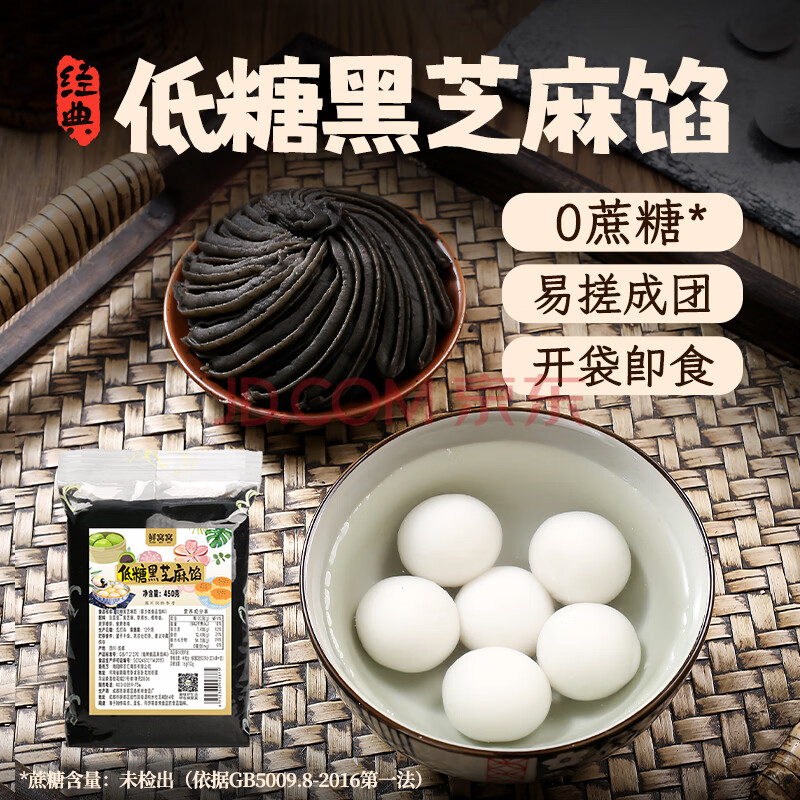 鲜窝窝汤圆馅料 低糖黑芝麻馅450g 元宵馅家用无蔗糖包子糕点心烘焙原料