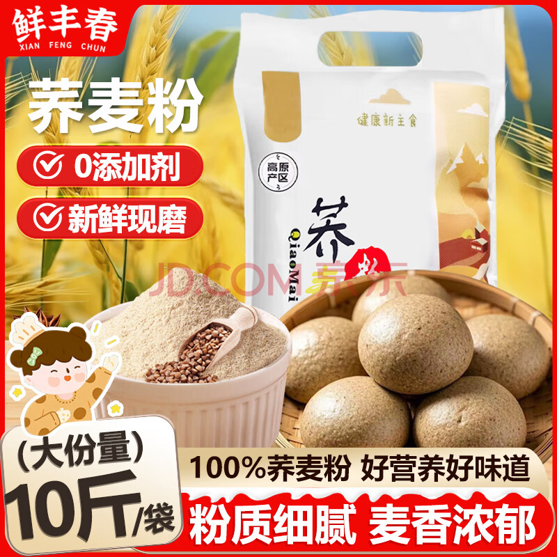 鲜丰春荞麦面粉专用乔麦面糖人糖尿人元宵汤圆粗杂粮100%纯荞麦面10斤装