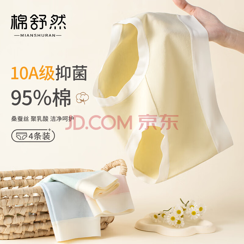 棉舒然内裤女士纯棉10A抗菌聚乳酸蚕丝加长底裆中高腰少女生三角裤头