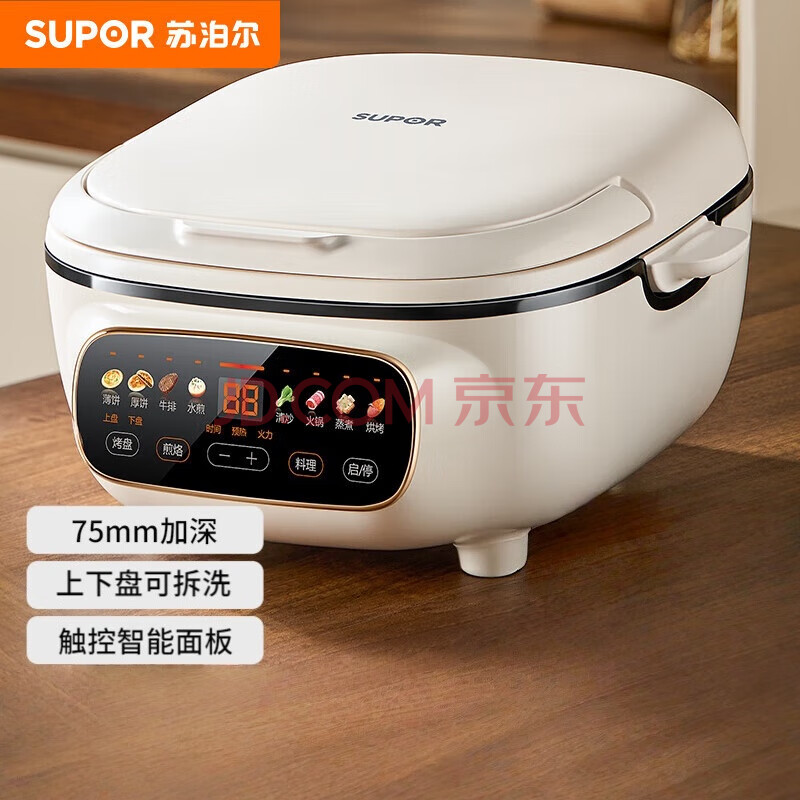 苏泊尔(SUPOR)电饼铛 电饼档家用上下可拆 蒸锅火锅炒锅 煎烙饼 三明治早餐机75mm加深 触控智能面板 JD2828R892