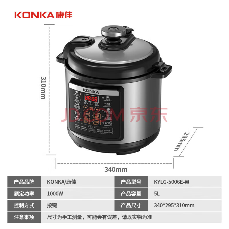 康佳(KONKA)电压力锅 5L家用多功能电高压锅不粘内胆高压电饭锅 智能预约电饭煲压力锅电压锅 KYLG-5006E-W