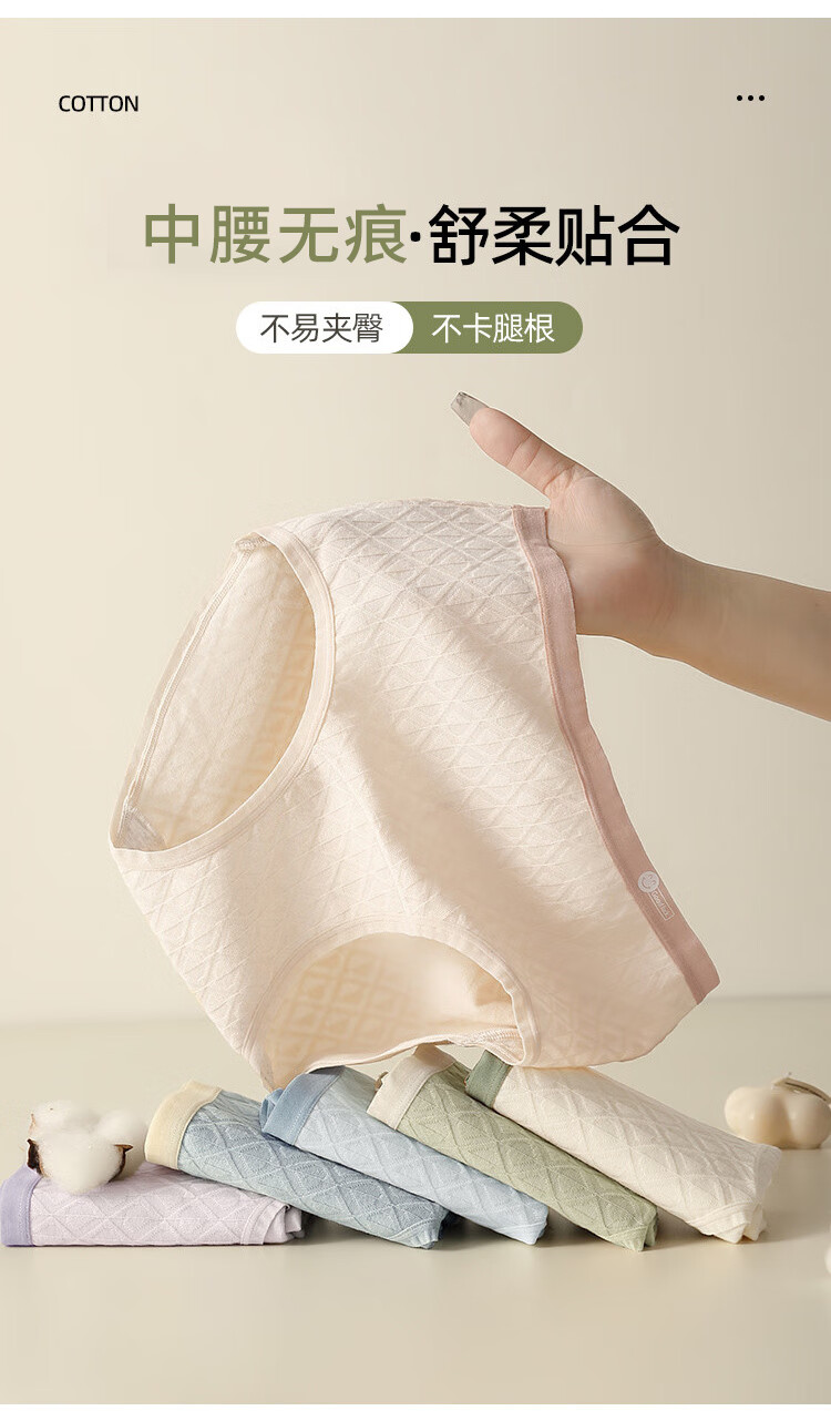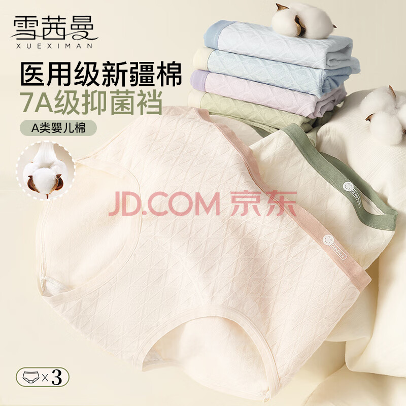 雪茜曼内裤女纯棉无痕7A抗菌裆医用级中腰亲肤少女生三角裤新款提花内裤