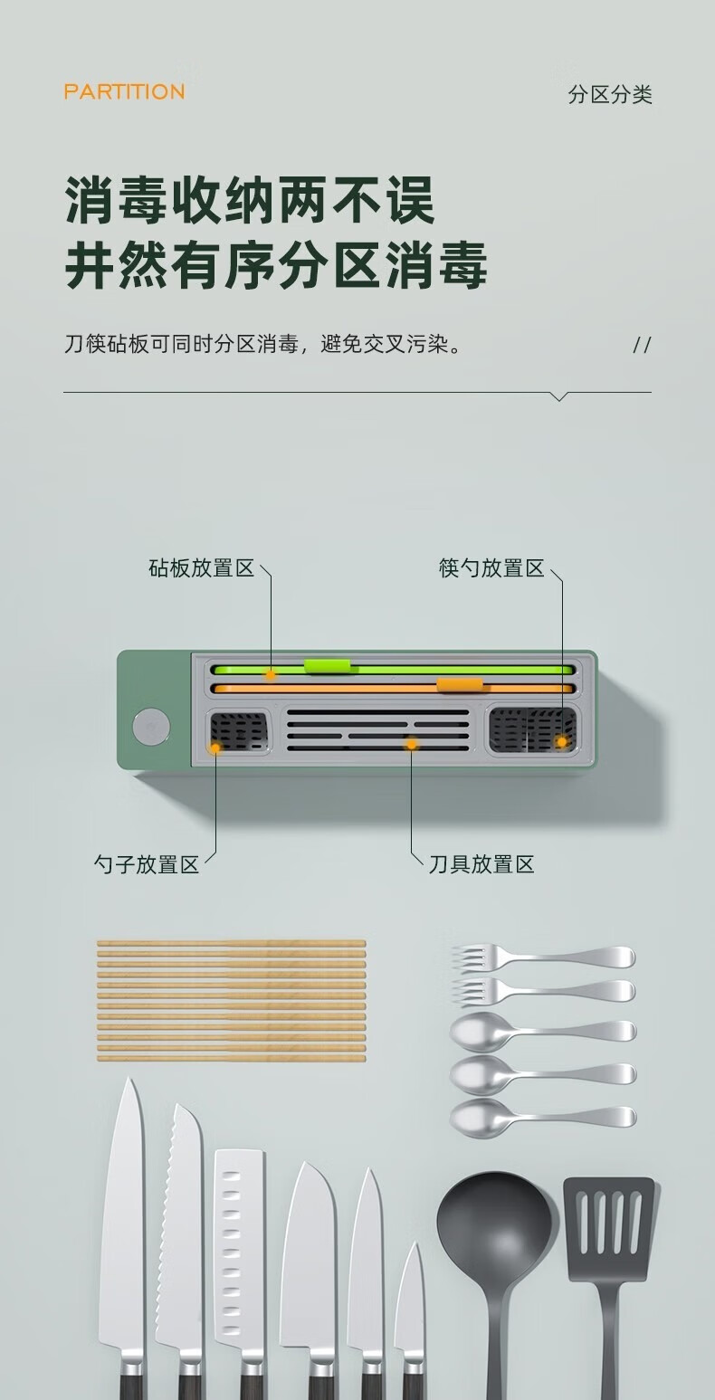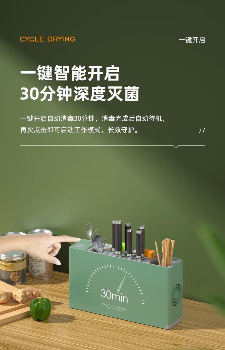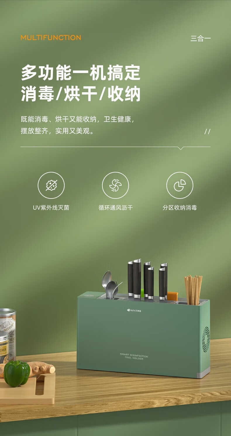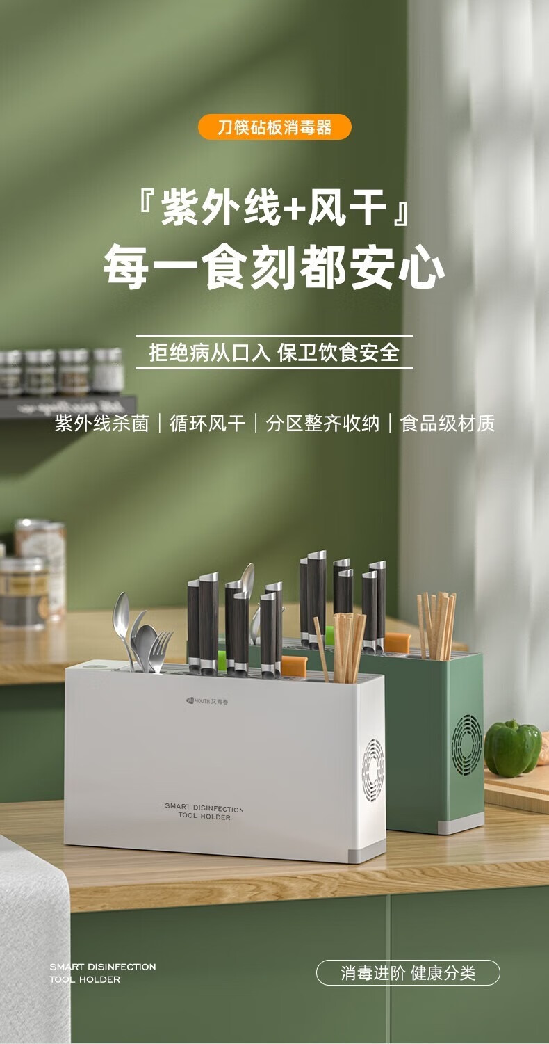 艾青春(AIYOUTH)消毒刀架砧板刀具消毒机家用小型筷子筒绿色 IQC-01