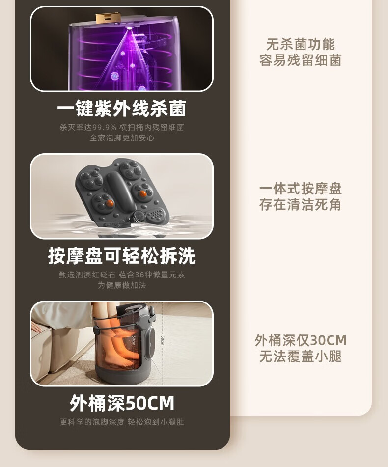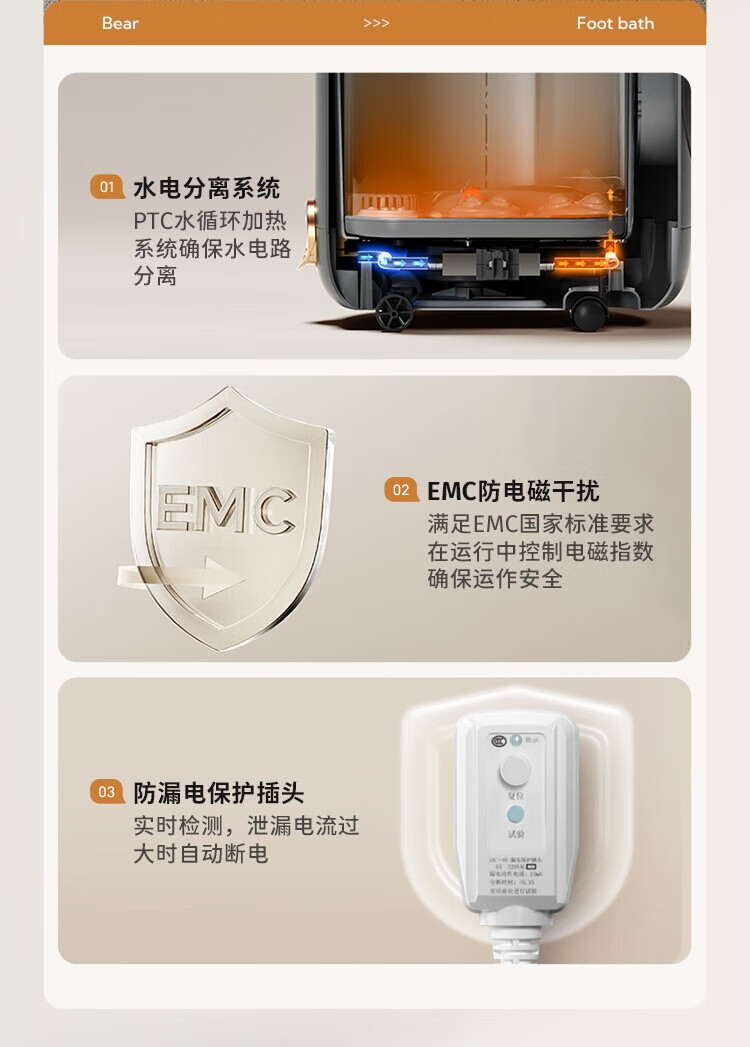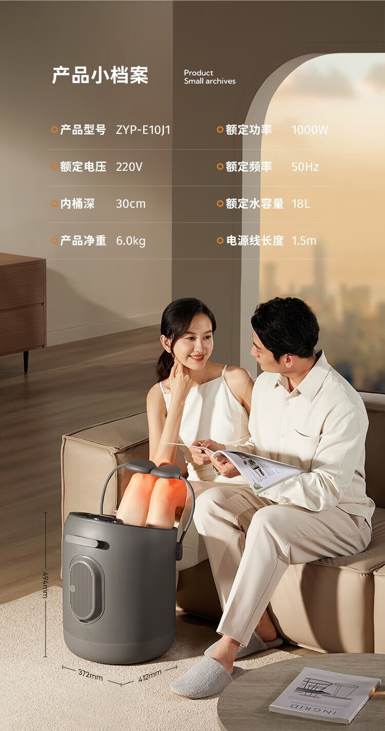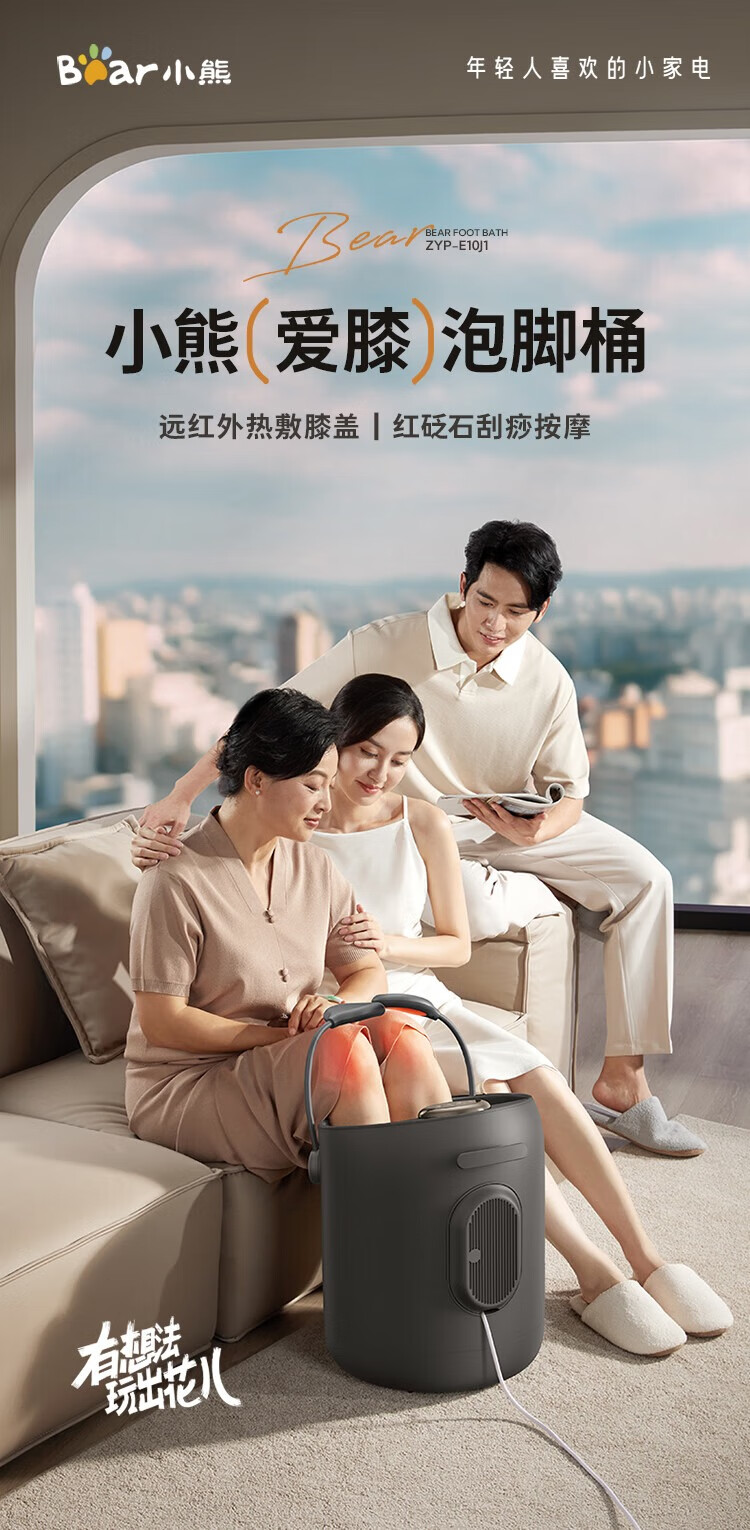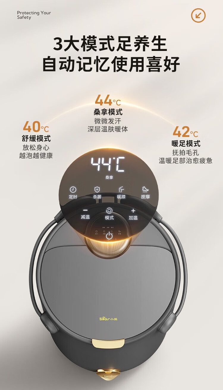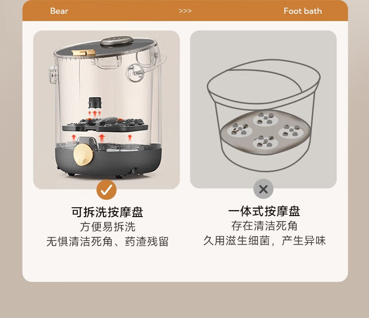 小熊(Bear)足浴盆·电动按摩智能杀菌泡脚盆 三重健康设计紫外线杀菌可拆洗按摩盘/ZYP-E10J1