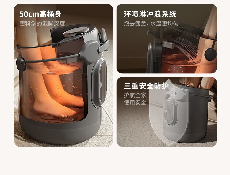 泰昌(Taicn)足浴盆智能杀菌泡脚桶洗脚盆洗脚桶泡脚盆足浴桶足疗盆电动龙爪按摩礼物 TC-12L6L4(烟雨灰)