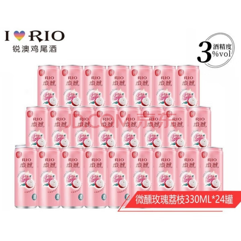 锐澳(RIO)预调鸡尾酒洋酒果酒伏特加 微醺3度玫瑰荔枝330ml*24罐/箱