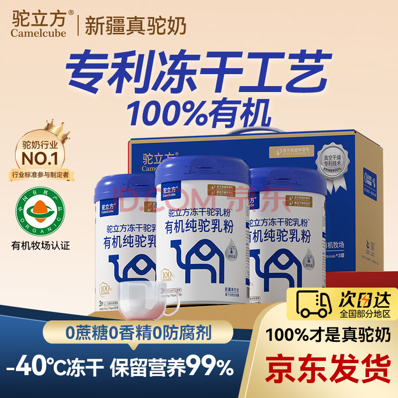驼立方冻干驼奶粉有机纯骆驼奶粉新疆正品100%生驼乳中老年儿童300g*3罐