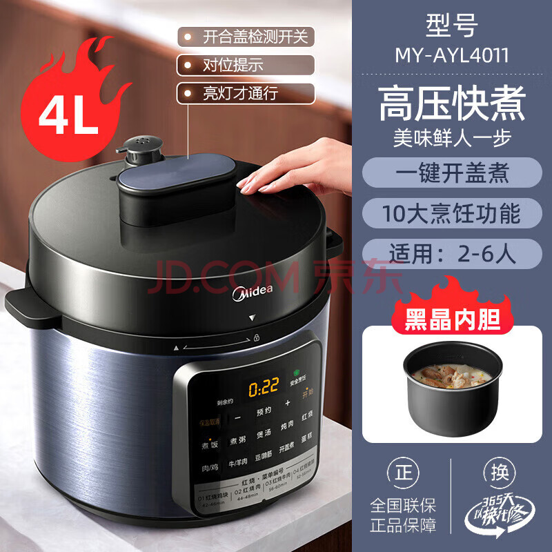 美的(Midea)电压力锅家用4升单胆小型电高压锅多功能智能预约一键开盖煮 MY-AYL4011