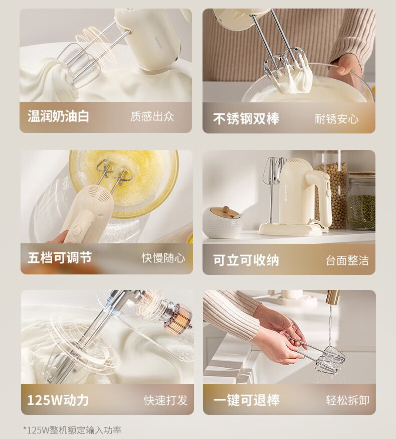 九阳(Joyoung)打蛋器.温润奶油白五档可调节料理机 质感出众快慢随心快速打发【企采购】