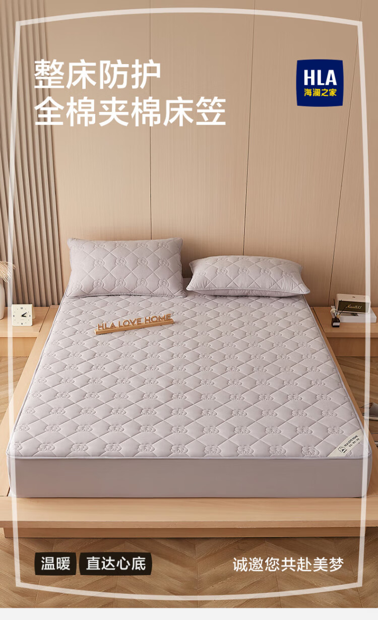 海澜之家 床单床笠刺绣夹绵床单床上用品床套单件 浅灰 单床笠150*200cm