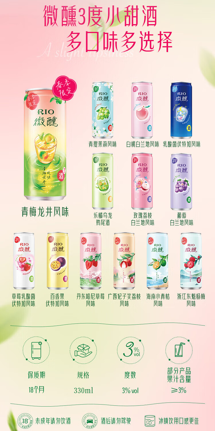 锐澳(RIO) 微醺3度 白桃味鸡尾酒 330ml*24罐 低度果酒 洋酒 鸡尾酒 果酒