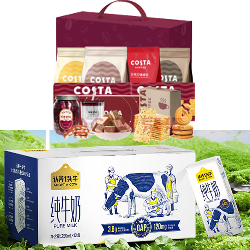 COSTA 缤纷星选饼干礼盒B+纯奶250ml利乐砖一提装 组合