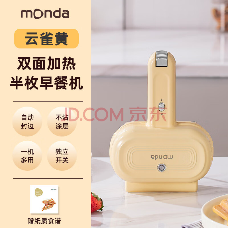 蒙达(MONDA)电饼铛 半枚早餐机 家用小型早餐三明治机烤面包机 双面加热 多功能烙饼机 MD-SW6008云雀黄