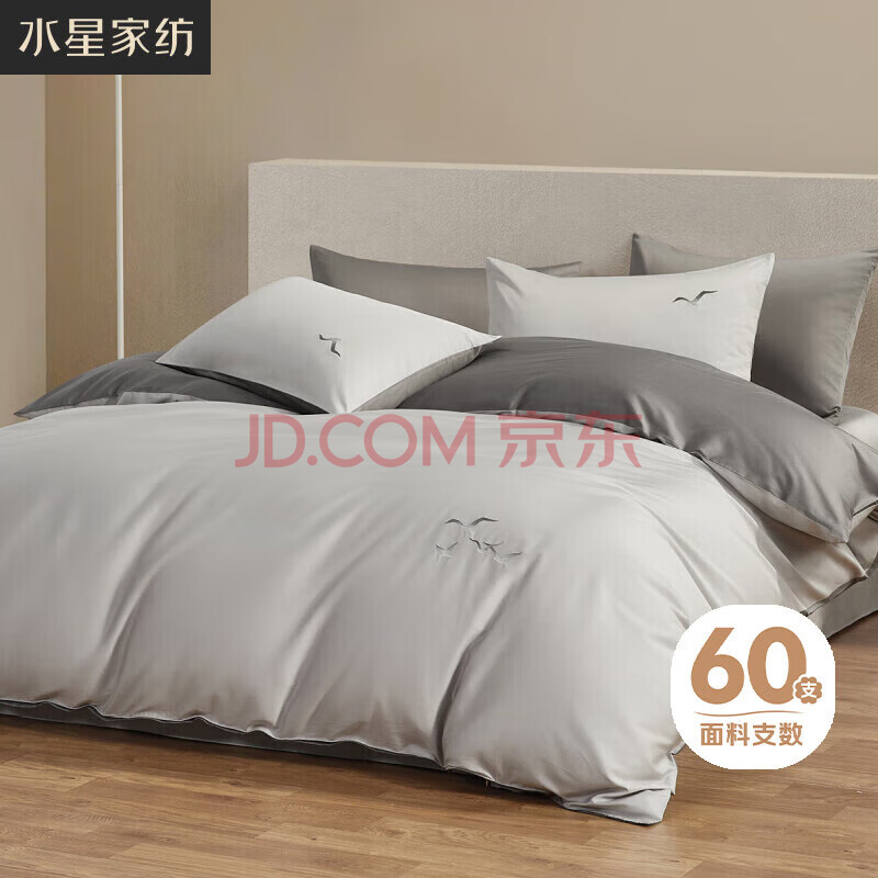 水星家纺60s长绒棉床上四件套a类被套床单双人1.5米×2米床雪