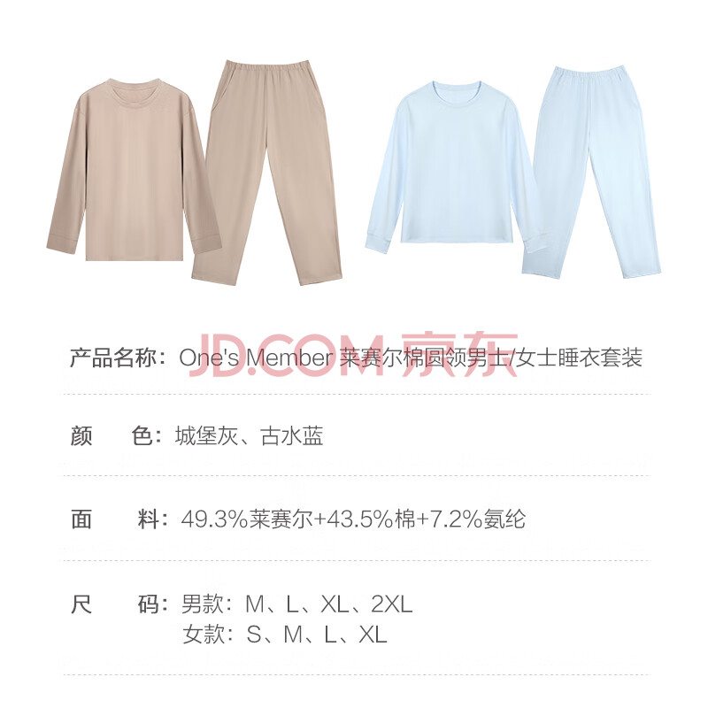 1号会员店A类一等品10A抗菌莱赛尔棉情侣款睡衣套装 男款-城堡灰 L