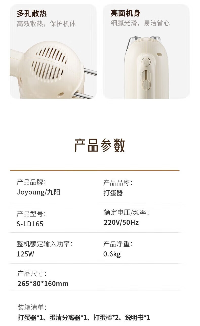 九阳(Joyoung)打蛋器·家用电动迷你奶油打发器 烘焙手持自动搅拌器 无收纳底座/S-LD165