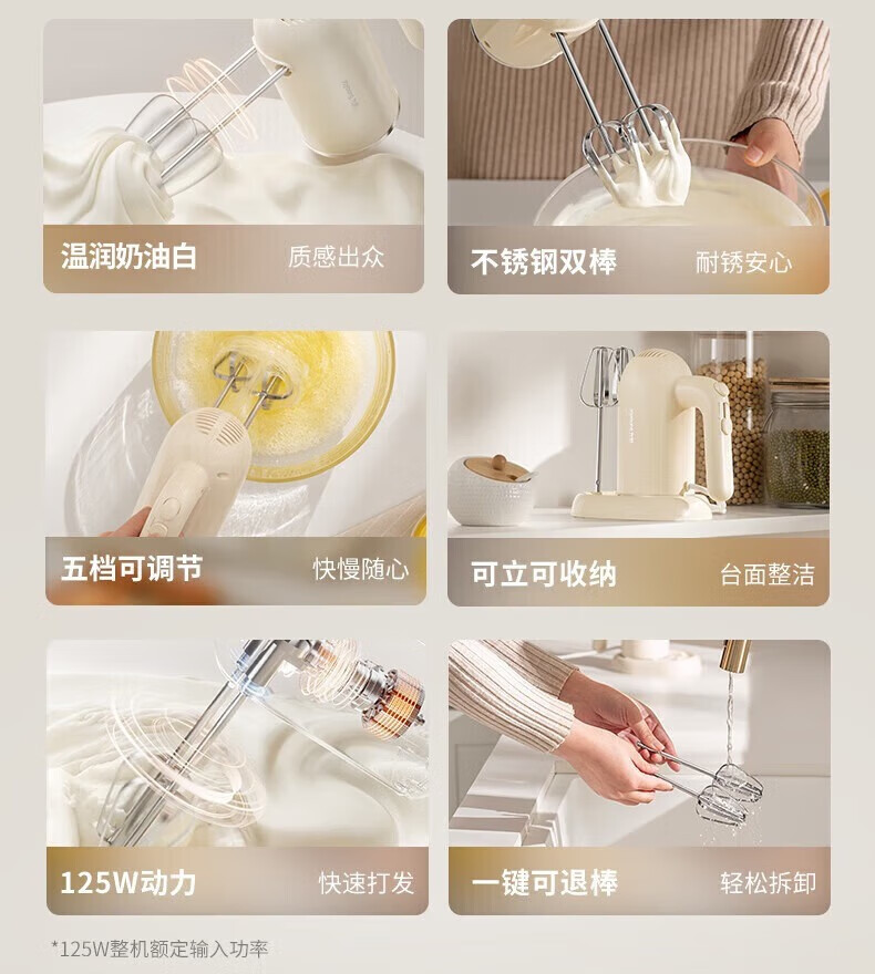 小熊 打蛋器 电动打蛋机 奶油奶盖打发器迷你 烘焙手持式搅蛋搅拌器 双棒五档 DDQ-B01K1