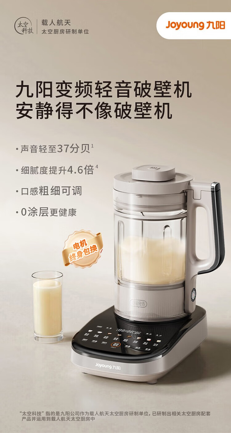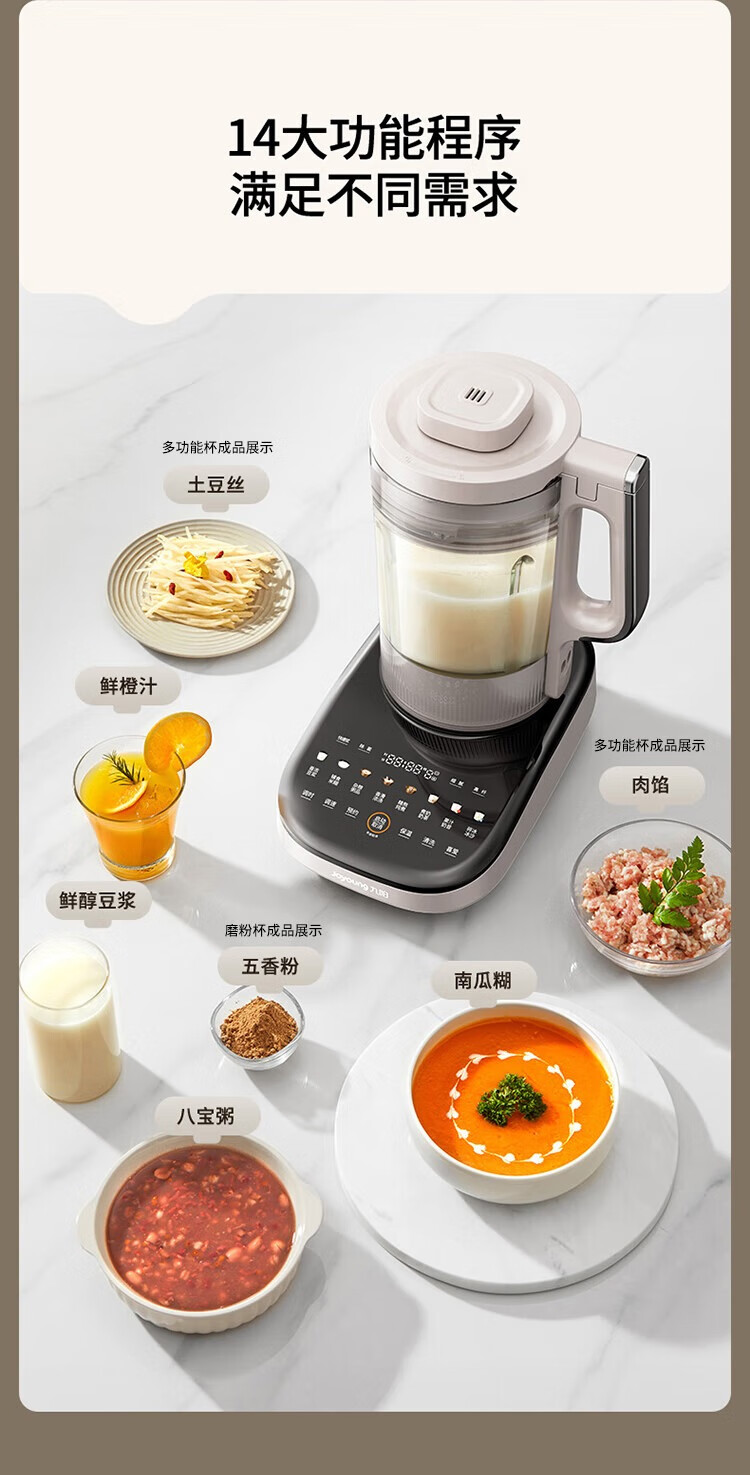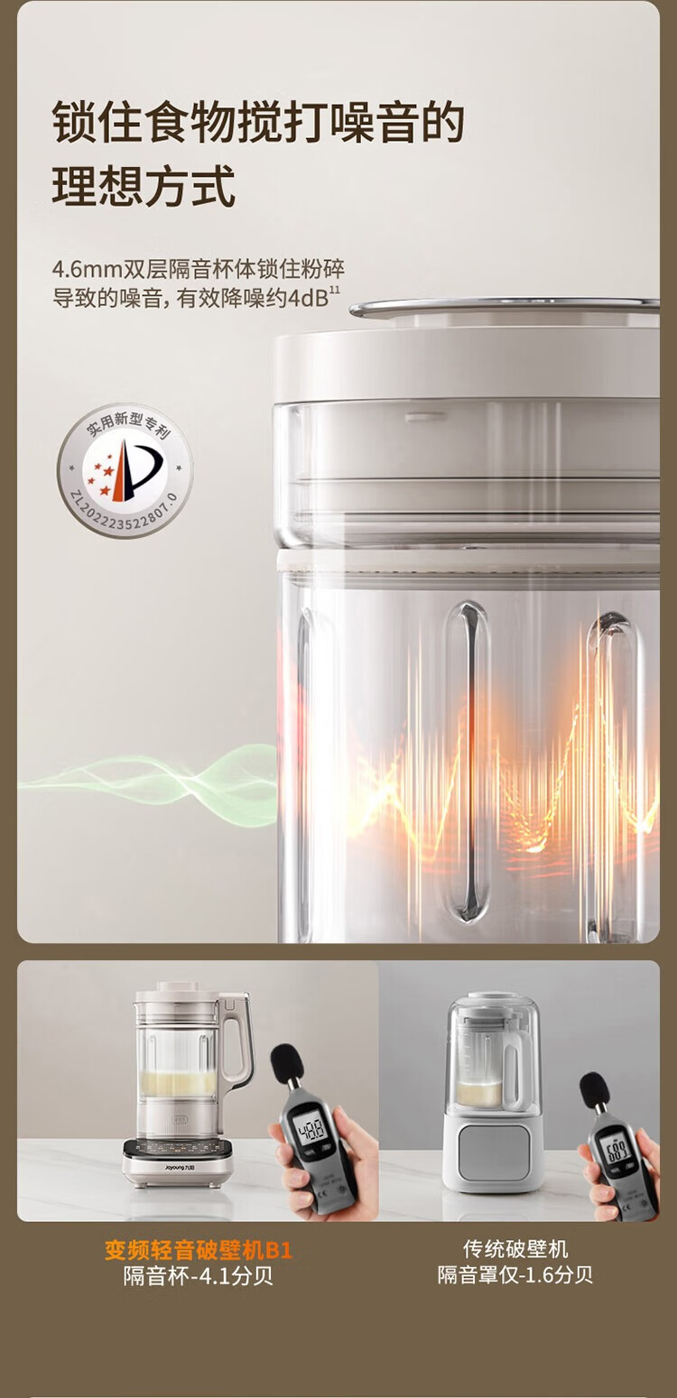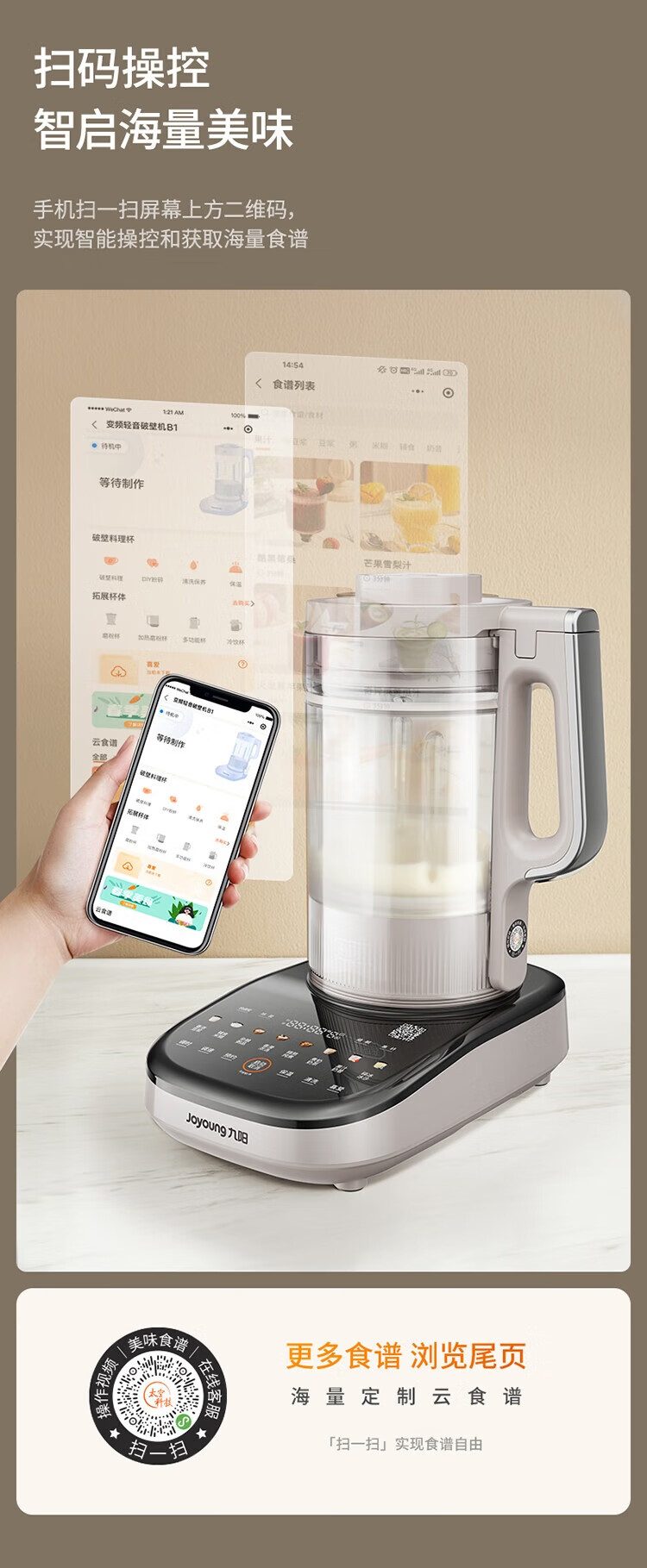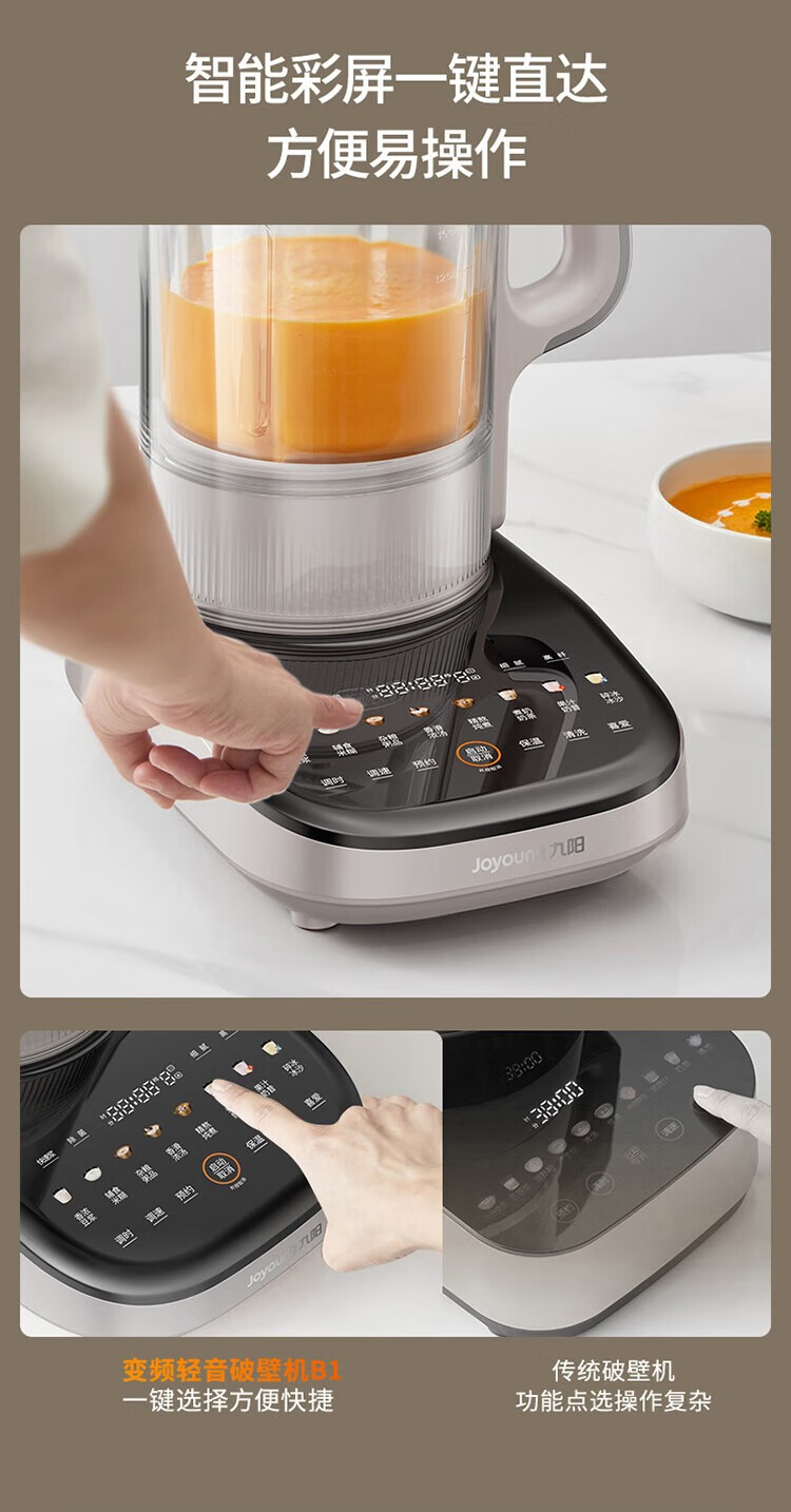 九阳(Joyoung)变频轻音破壁机 家用 1.75L全自动豆浆机料理机触控彩屏 B1