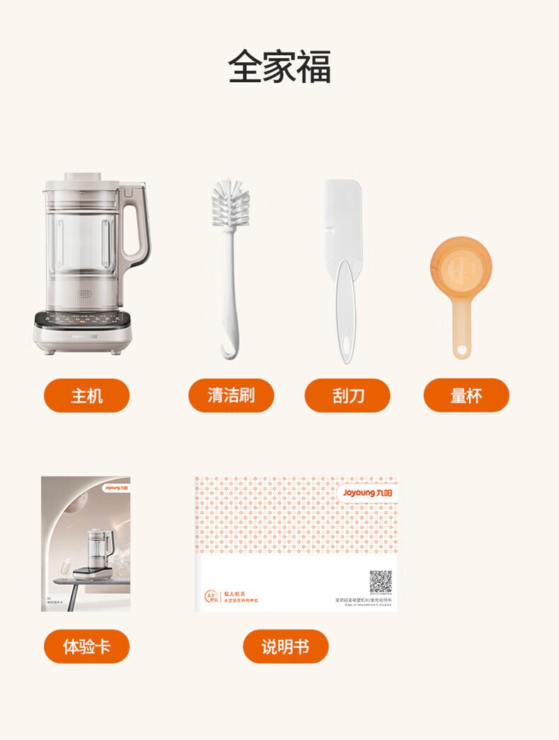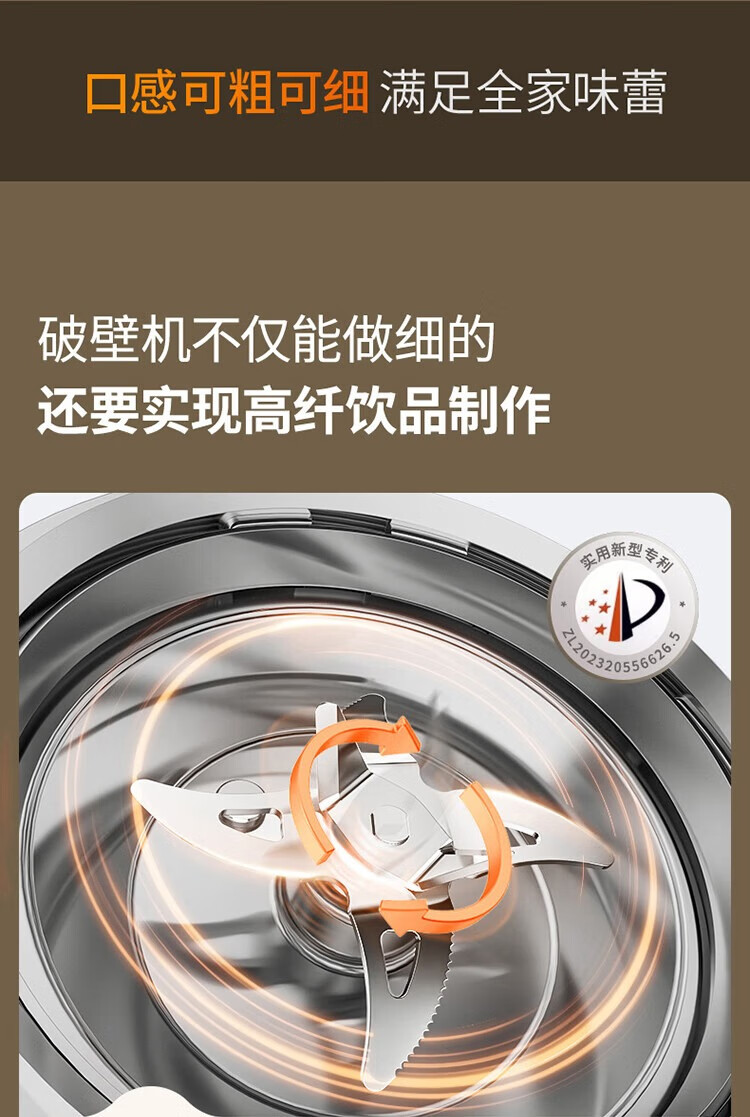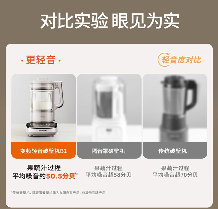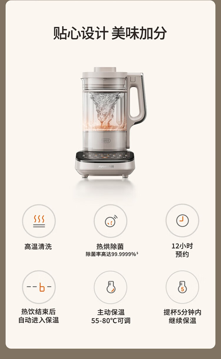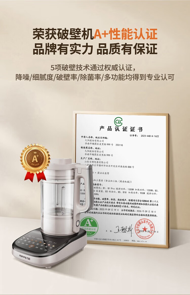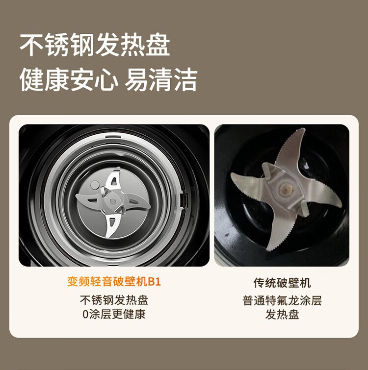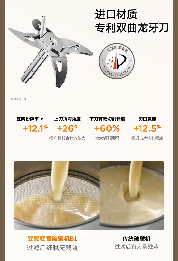九阳(Joyoung)变频轻音破壁机 家用 1.75L全自动豆浆机料理机触控彩屏 B1