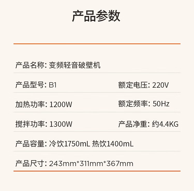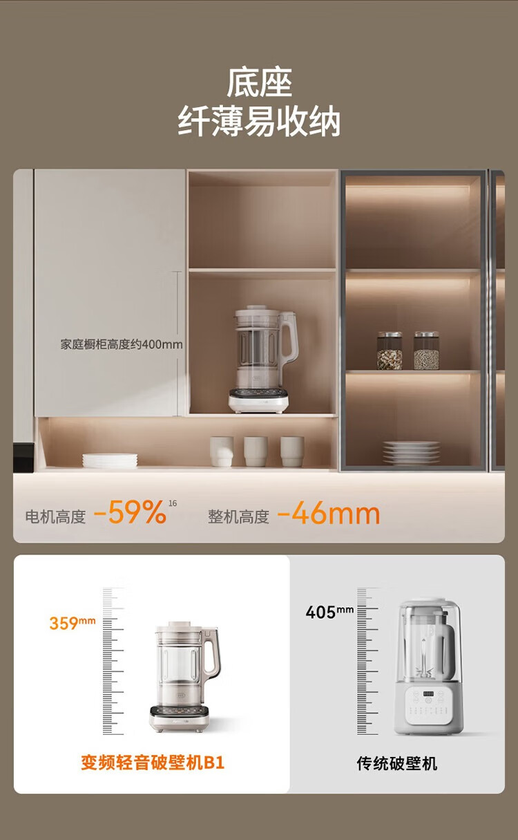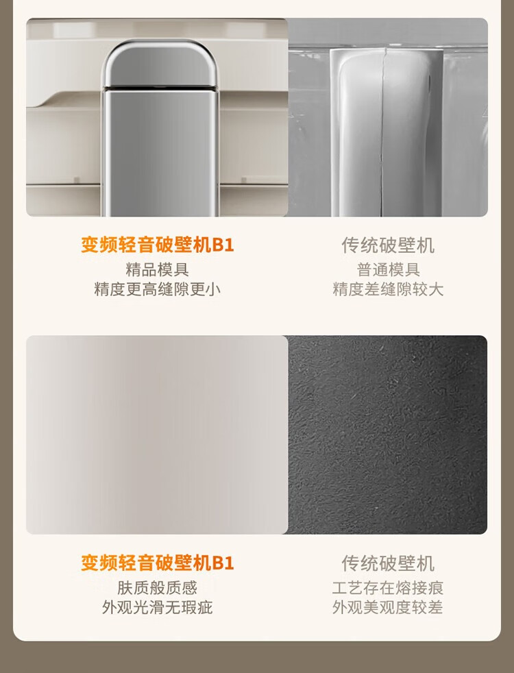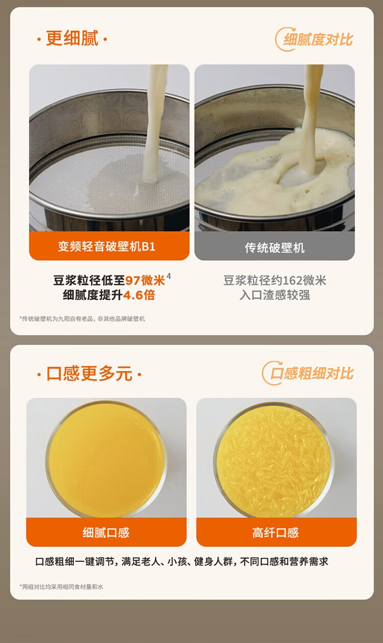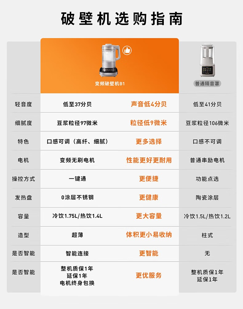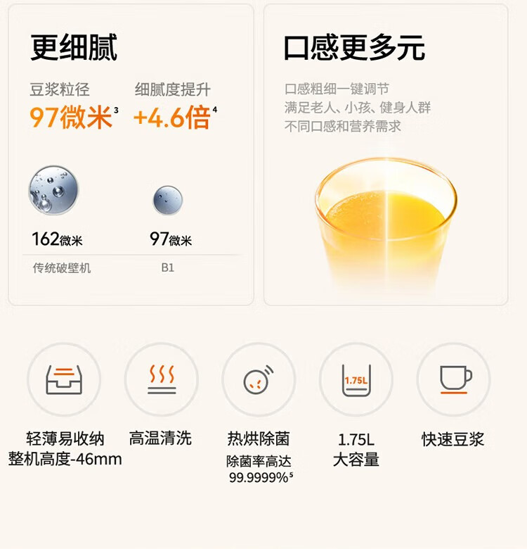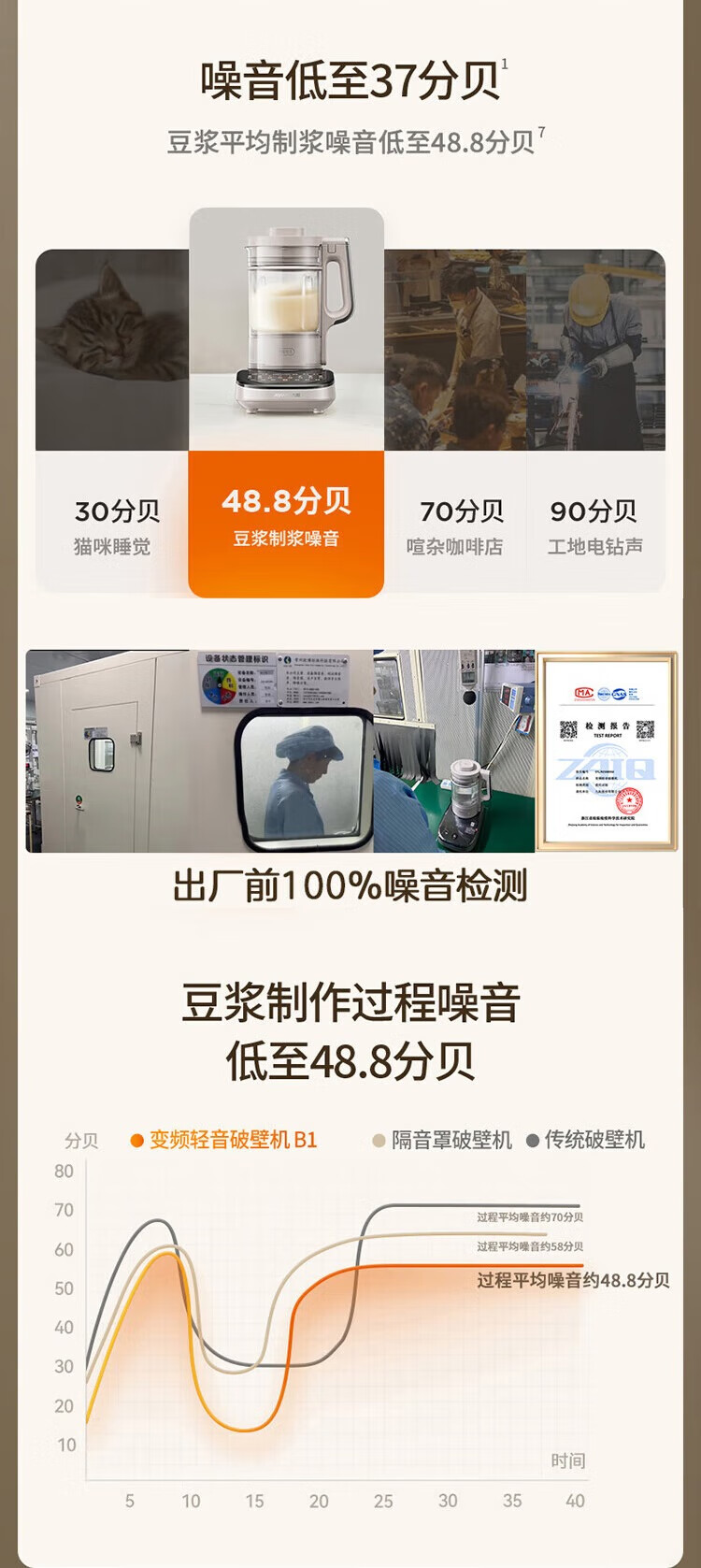 九阳(Joyoung)变频轻音破壁机 家用 1.75L全自动豆浆机料理机触控彩屏 B1