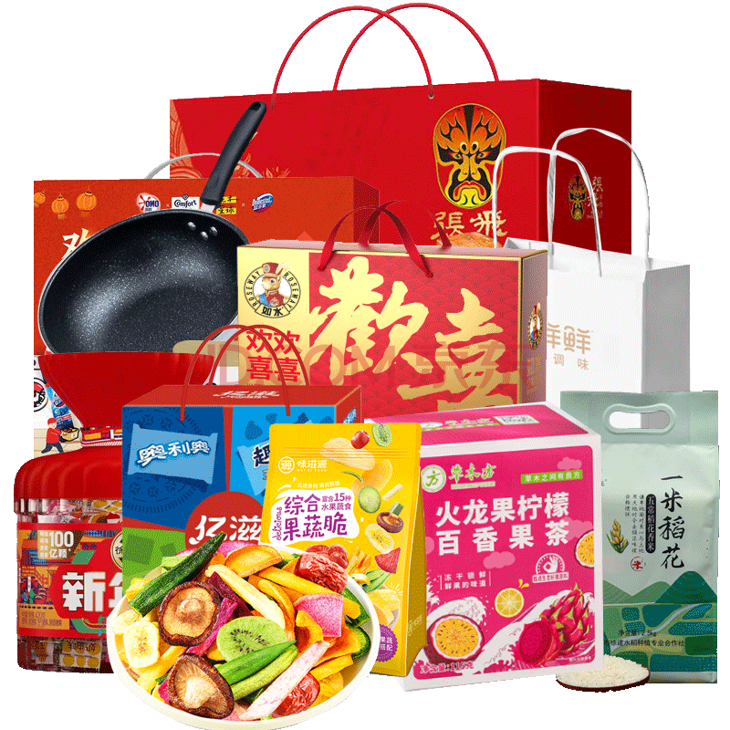 张飞有礼牛肉零食礼盒1021g+米调味坚果糖饼干果蔬脆茶包锅清洁等组合